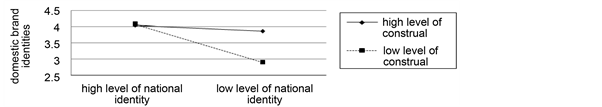 H2: The effects of construal levels on consumers’ evaluations of domestic brands will be attenuated for those with high national identity.