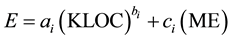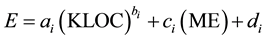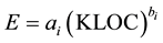 E is the effort in person-months, KLOC represents the thousand (K) lines of code included in a software project. Typically, the coefficient ai and the exponent bi are chosen based on COCOMO pre-set parameters that depend on the software project details.