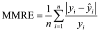 These performance criteria are used to measure how close the predicted effort to the actual values, where y is the actual value,