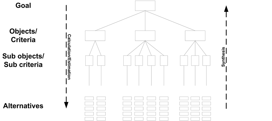 ・ Complexity Analysis: A hierarchical tree is created with criteria, sub-criteria and alternative solutions as the leaves.