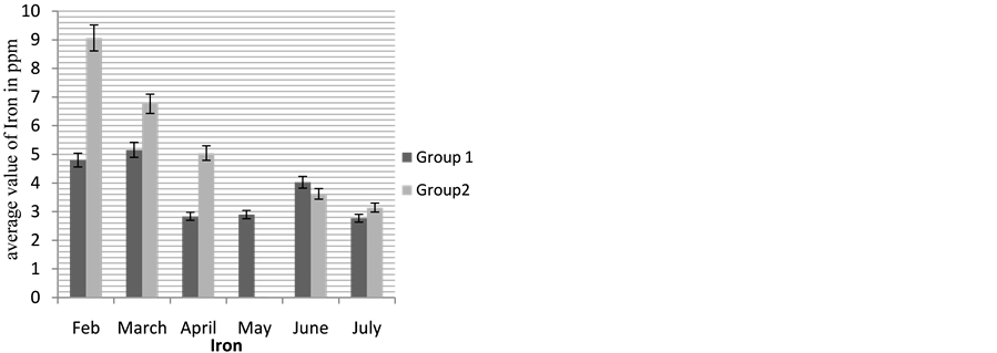 For more precision and clarity in the development of our results and to conduct a thorough interpretation we studied the concentrations found in mussels “Mytilusgalloprovincialis” according to two size groups: Group 1 (45 - 70 mm), Group 2 (20 - 44 mm).