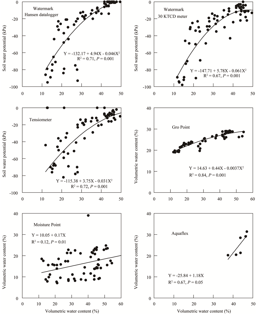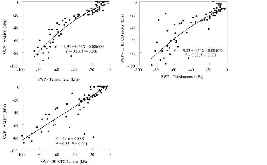 closely correlated to each other; both instruments used similar equations to convert Watermark sensor electrical resistance to soil water potential (Shock et al. 2001).