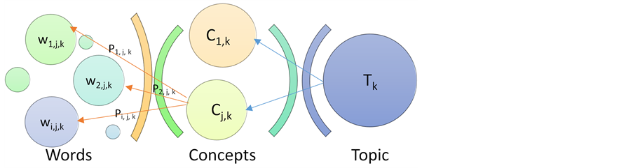 . To formulate the query, we need to choose top five words that match the top values of the Dominant Meaning Probability (DMP). Where the dominant meaning probability is defined as, and as shown in Figure 3: