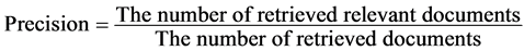 The definition is considered that the precision is the fraction of retrieved documents that are relevant to the find.