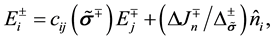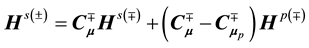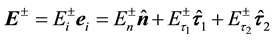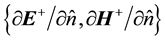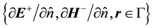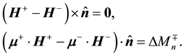 The superscripts “−” and “+” stand for the boundary values on the two sides of the interface, and