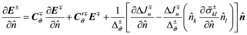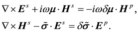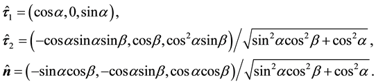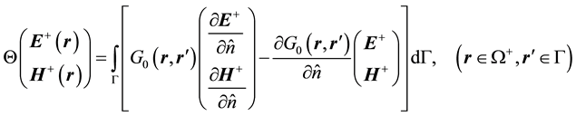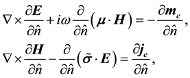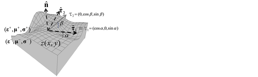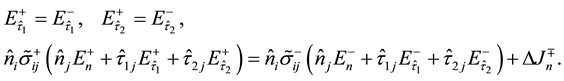 . In isotropic cases, it is not difficult to obtain the explicit formulae of the boundary values because all these tensors reduce to scalars that make the explicit solution straightforward. The difficulty is increased in applying the separate and implicit formulae to anisotropic media and arbitrary interface topography as they do not explicitly give the solutions of the boundary values, so that they must be individually or successively employed in electromagnetic field modeling. In addition, most of numerical modeling techniques, such as finite-difference, finite-element and boundary element methods approximate the boundary values with some numerical schemes, e.g. the finite-difference method often replaces the interfaces with great gradients to produce the “strong solution” of electromagnetic fields [2] . The finite-element method employs combinations of the edge-vectors to approach the field intensities so that the boundary conditions are satisfied at the sampled points [3] . However, the accuracy of the edge-vector approximation depends on the number of the samples of the edge-vectors [4] . Also, these numerical approaches cannot simultaneously produce the complete set of boundary values due to only involving one-side boundary values in the assembled linear equations, and need an explicit formula to recover another side boundary values. In order to simplify the implementation of the boundary conditions or recover whole boundary values at an interface, it is desirable to combine the two separate and implicit equations into a single integrated and explicit formula so that it can be more directly and easily applied to theoretical and numerical electromagnetic anisotropy problems.