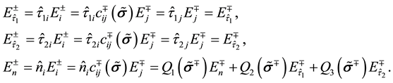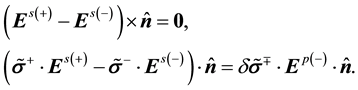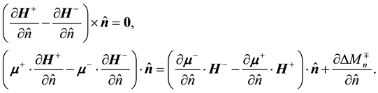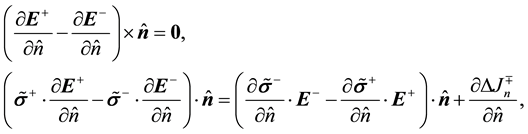 which is the same as Equation (14b). Similarly, substituting Equation (40) for Equations (34), (35) and (36) respectively, they become Equations (18), (19) and (20). Therefore, the explicit tangential versions are equivalent to the explicit normal versions and vice versa as Equation (41) are reversible. Specifically, when the two media have the same electric permittivity