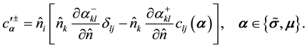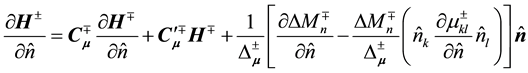 Applying Equations (44) and (45) to an interface of two anisotropic media, we obtain the boundary conditions of the partial derivatives: