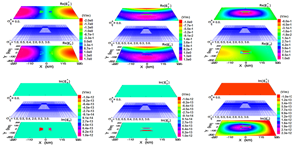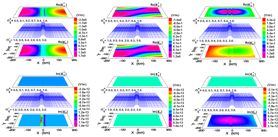 Figure 2 displays the synthetic results at the air-earth interface of a hill. Three components of the boundary values