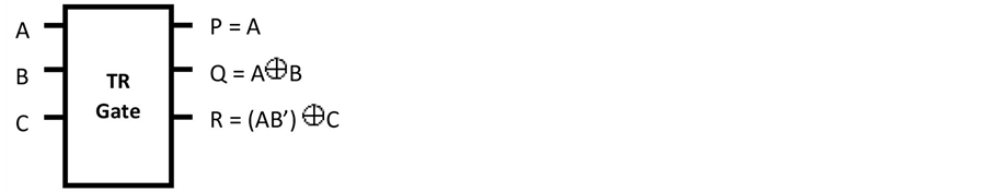 Thapliyal proposed a three input reversible gate called TR gate [3] . A, B and C are inputs and P, Q and R are corresponding outputs. The gate has unique one to one mapping.