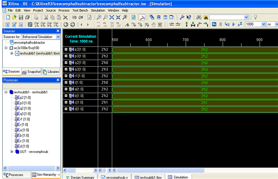 The proposed method is verified for functional verification in Xilinx 9.2 using verilog simulator. The results for Comparator using the full subtraction algorithm is shown in Figure 9. Results for Comparator using half subtraction algorithm is shown in Figure 10.