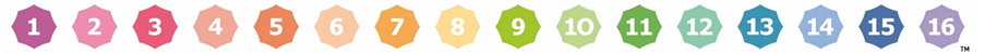 Figure 2. The 16 Baumann Skin Types are designated by scalloped octagons with a corresponding number and color.