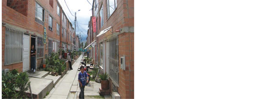 Community leaders, in an effort to narrate the conditions of the Saul Cantoral informal settlement before formalization program, provided old pictures as pictorial records on the formation and development of the settlement. Figure 8 records the main street to the informal area and the precarious construction materials used for house construction, while Figure 9 shows the community water facility and the social activity that existed in the settlement before the formalization program was completed.