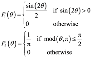 The only solution we have found where each function is finitely differentiable in the nonzero quadrants is given in Equations (13) and plotted in Figure 2. Note that both functions are nonzero only over half the 0 - 2π domain. This is required to get zero correlation at a 90 degree angular difference. The two functions are plotted versus angle in Figure 2.
