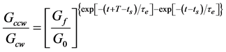 is the power gain. The time-dependent phase difference between clockwise (CW) and counter clockwise (CCW) pulses [25] is
