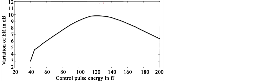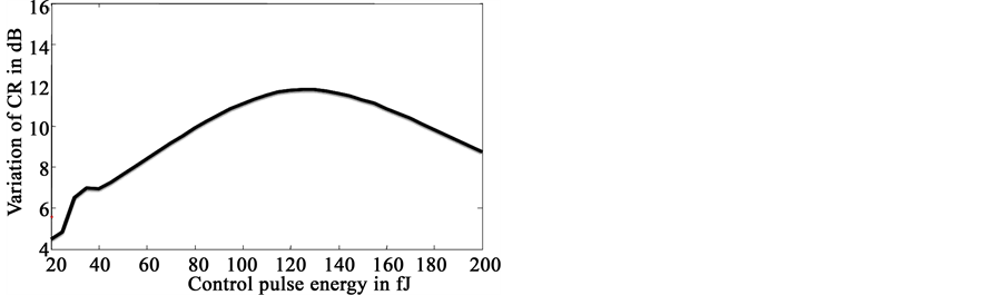 On the other hand, if the control pulse energy is increased from some specified value (~100 fJ) then the SOA becomes strongly saturated so that the counter clock-wise pulse has enough time to see a partly recovered gain, that is also insufficient to create the necessary differential shift and hence reduces the matrices variation.