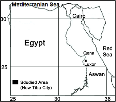 The study area was geologically investigated by many authors such as [2] - [15] , and others. Few engineering and geotechnical investigations were conducted on the studied area like engineering geophysical study to evaluate the geotechnical behavior of the soils at Tiba city [16] , investigation of rock deterioration in the Royel Tomb of Seti I, Valley of The Kings, Luxor [17] , engineering geophysical study at New Qena city north the study area [18] , engineering classification of the soils exposed along Upper Egypt-Red Sea road north of the study area [19] , geotechnical evaluation study of Pliocene sedimentary rocks exposed along Qena-Safaga road north of the study area [20] , and geotechnical evaluation of the sub-grade soils at the Cemeteries area, New Tiba city [21] .