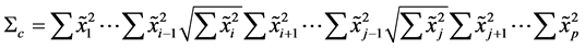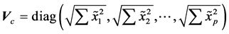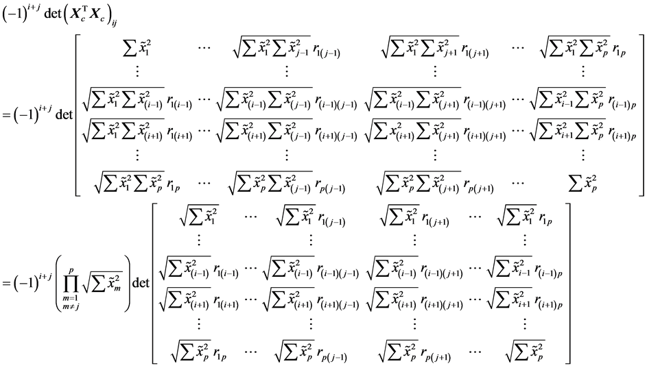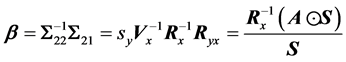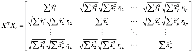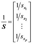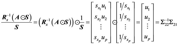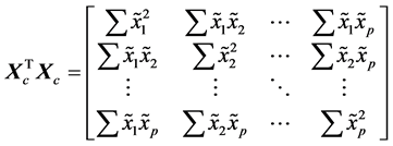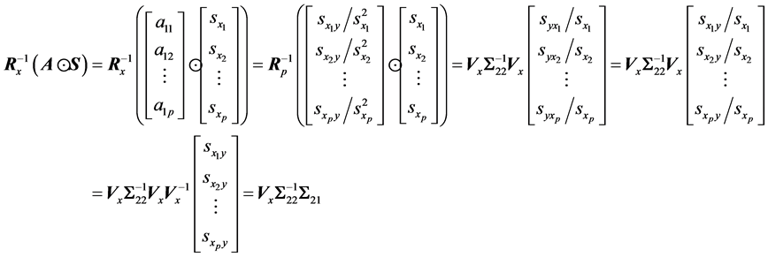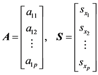 Equation (2), S is the p × 1 matrix of the standard deviations of the xi covariates and Rx is given by Equation (4). If we denote A and S by: