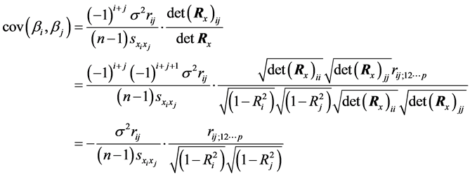 At this point we should note that Equation (33) was also mentioned by Becker and Wu, and was attributed to [29] . However, the formula was given there only as an unsolved problem for the regression with two independent variables. Most probably, Becker and Wu (since they were aware of the formula), overlooked the fact that the partial correlation coefficient can be calculated from the pairwise correlations, using simple matrix manipulations. To the best of the authors’ knowledge, Equation (30) and its derivation is novel, since it cannot be found or mentioned in any of the traditional books of linear regression or multivariate analysis [24] [27] [29] -[33] .