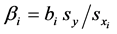 Another commonly used formula, can be derive the estimation of the standardised regression coefficients