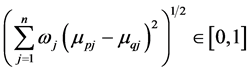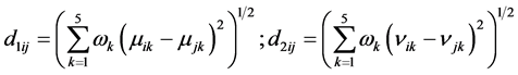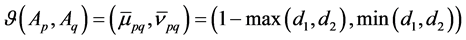 . However, in the increasingly complex socio-economic environment, there are different degrees of hesitation on comprehension and cognition, which can’t make a valid judgment. Therefore, the traditional fuzzy set cannot be used to completely describe all the information in such problems. Atanassov [2] expands Zadeh’s fuzzy set theory with the concept of intuitionistic fuzzy set (IFS), which is characterized by a membership function, a non-membership function and a hesitation function [3] . Since IFS can describe the uncertainty and the essence of fuzzy, it has been widely concerned and applied. The research on the application of intuitionistic fuzzy sets are mainly focused on the fields of multi-attribute decision making [4] [5] and pattern recognition [6] [7] . Many scholars have applied IFS to the cluster analysis, which generates the research of intuitionistic fuzzy cluster analysis (IFCA). At present, the research on the IFCA is still not perfect. In IFCA, the core of this problem is to obtain the proximity degree of two intuitionistic fuzzy vectors, which is the similarity degree in IFS. With the different forms, this paper discusses the problem of structuring similarity degree. Zhang [8] proposes an intuitionistic fuzzy similarity degree with an intuitionistic fuzzy number (IFN) and obtains the results by constructing intuitionistic fuzzy similarity matrix (IFSM), intuitionistic fuzzy equivalent matrix (IFEM) and l-cutting matrix of IFEM, while the similarity degree is not easy to calculate. Chen [9] proposes an intuitionistic fuzzy clustering method based on set valued statistics, and the similarity degree is represented by an IFN. The method is also complex in calculation.