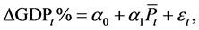 To counter the autocorrelations that are natural to the GDP data and that are introduced by the interpolation, the regressions were corrected with Heteroskedasticity and Autocorrelation Consistent (HAC) covariance estimation, followed [8] . Table 5 and Table 6 shows the result. The first table indicates that the estimators are significant when the selected country is a major oil producer (such as UK and Norway). This result is reasonable, as oil plays a vital role in these countries’growth. Nonetheless, the low R2s in both models suggest that they performed poorly, which in turn implies that oil prices cannot explain many variations in GDP. Two reasons may explain this observation. First, time lags may exist between the oil price fluctuations and their impact, so the change in oil price won’t be reflected on GDP instantly. Second, GDP often explains itself, i.e. it is highly autocorrelated, hence it is unlikely to undergo sudden increases or decreases as oil prices have.