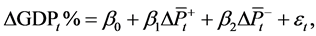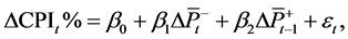 in order to capture the asymmetric effect of oil price movements. These variables represent the magnitudes of oil price increase and decline. In this way,