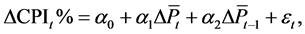 As mentioned above, the inclusion of the lag in the model significantly improves the model. One possible explanation for this behavior is that the effect of change in oil prices is not reflected immediately in CPI. Prices of many different goods and services, which are directly or indirectly related to the oil price changes, are included in the calculation of CPI. Some of the prices involved are relatively more sensitive to the oil price changes than others, so it will take some time before the impact of oil price fluctuations reaches each of them. Additionally, unlike crude oil prices which are continuously changing following the market dynamic, CPI is computed less frequently. Hence, the prices changes in the goods and services in the current period might only be seen in the next calculation of the CPI.