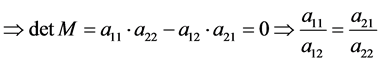 In the expression of the determinant of M we notice the presence of two variables, the propagation constant and the frequency.