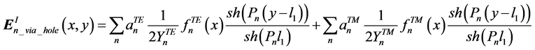 The phrase reflects the electromagnetic field of the n modes created by the via-hole in the area 2.