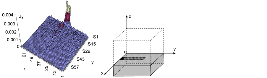 We note from this Figure 9 that the current is maximum at the via-hole and almost zero else. This clearly verifies the boundary conditions which validates the method of analysis used.