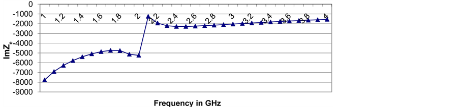 Figure 17. Variation of the input impedance of the microstrip line according to the frequency.