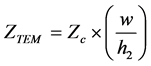 The fundamental mode of propagation of such a support is not TEM because the cross section is not homogeneous. However, since the amplitudes of the longitudinal components of electric and magnetic fields are sufficiently small to be neglected, one thus speaks by quasi-TEM mode. This makes it then possible modeling of the structure in the form of a characteristic line impedance Zc transmission immersed in an equivalent homogeneous medium characterized by an effective relative permittivity er2.