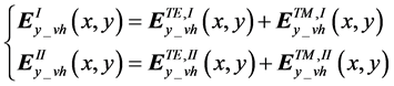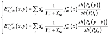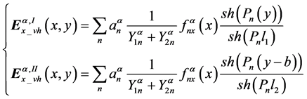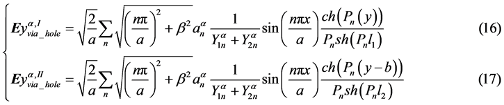 1) General formulas of the electric field created by the via-hole along the axis (ox), in the regions “I” and “II” by Figure 3 are defined by:
