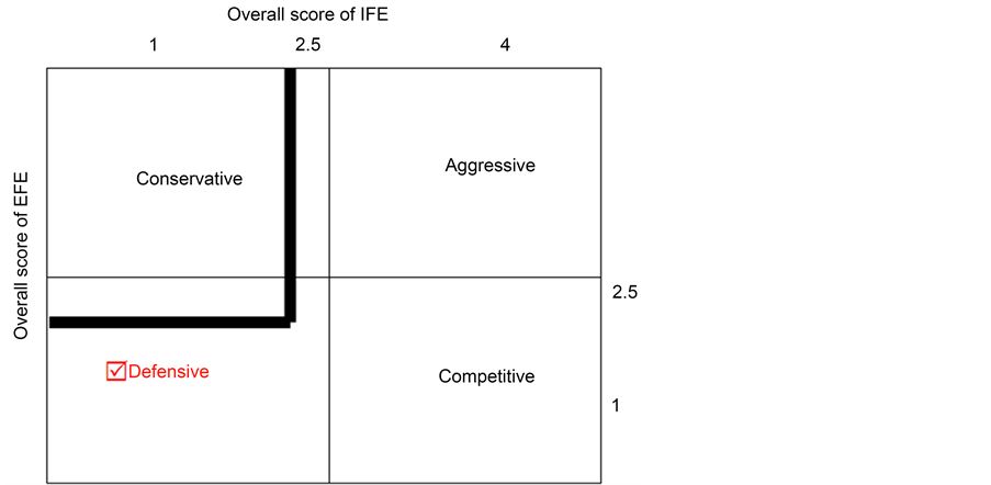 Figure 2. Current status of the environmental management of the studied area (IFE and EFE). Note: Based on this figure, defensive strategy matrix should be selected.