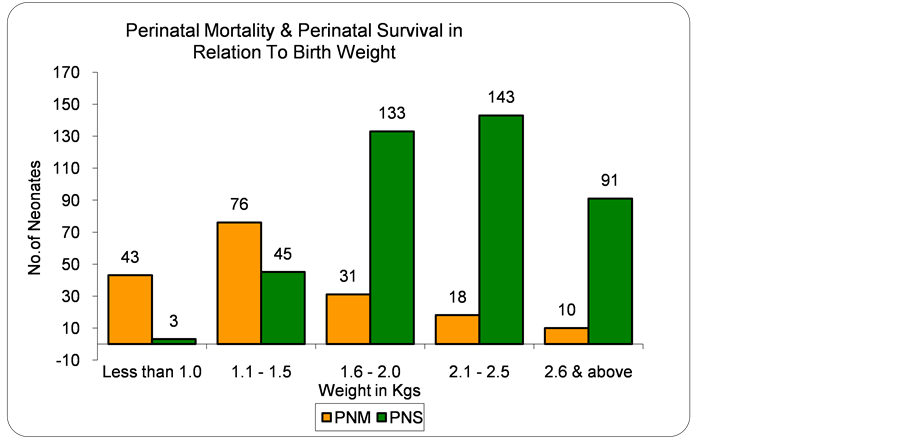 Figure 2. Chart to show increasing perinatal survival with increasing birth weights especially in the more than 1.5 kgs group.