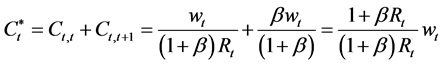 Therefore, under perfect credit market, the total optimal consumption for an agent: