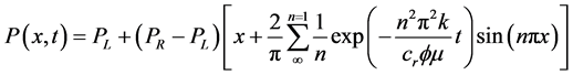 the fluid viscosity and P represents the pressure at position x at time t. The porosity of the reservoir and the density of the fluid phase are both functions of pressure, and for an isothermal system