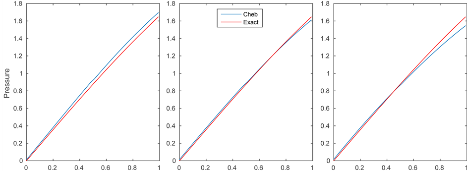 we obtain a set of linear algebraic equations from Equation (36) based on the collocation points. These set of linear equations are solved for D. In order to reconstruct the pressure,