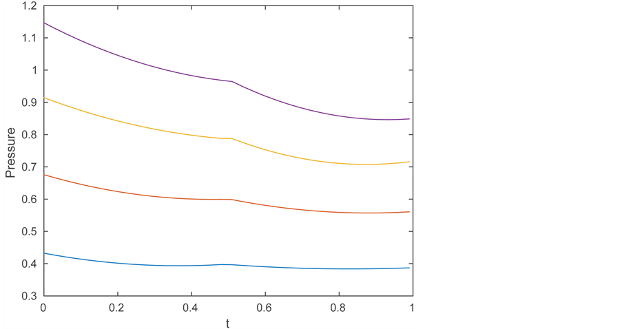 Figure 5. Pressure approximation by Chebyshev wavelets method over different time periods.