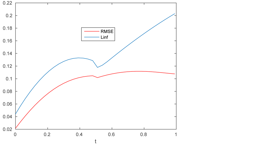 Table 1. Root mean square error estimate (RSME) and maximum absolute error (MAE) at time t.