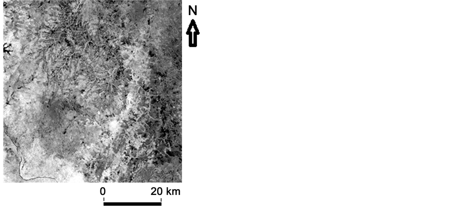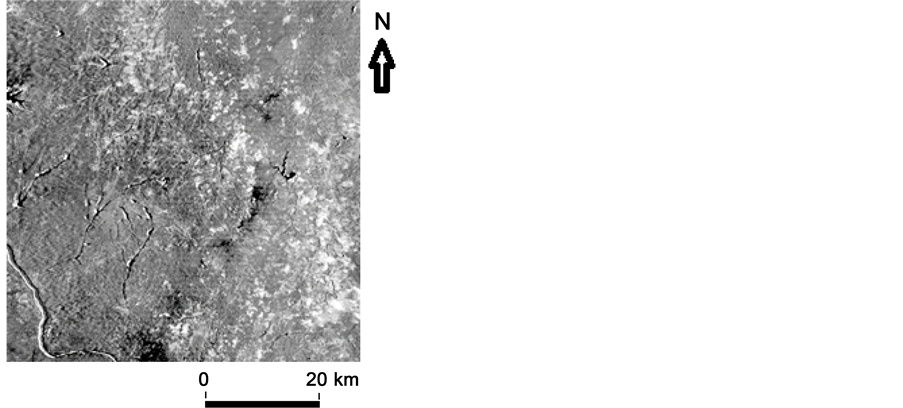 - The zones of black to dark gray reveal an absence or very little vegetation cover. Therefore, they could represent water and mineral surfaces.