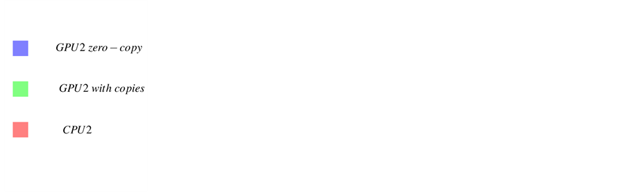 Table 5 and Table 6 provide a summary of the realized measurements. It is noted that on platform1 the prior version of the algorithm is accelerated 3 to 10 times for algorithm version with copy and 4 to 30 times for version with zero-copy. On platform 2, version with copy processing perform 1.5 to 9 times and version without copy 3 to 18 times.