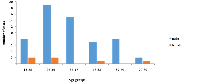 Our study found male predominance reported by most authors [6] [7] [9] [11] [12] .