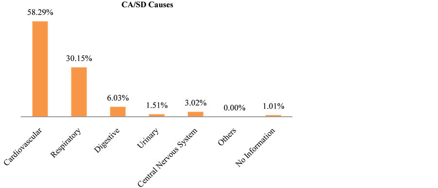 Figure 5. Causes of CA/SD cases with CPR (source: INMLCF, I.P.; ref. [11] ).