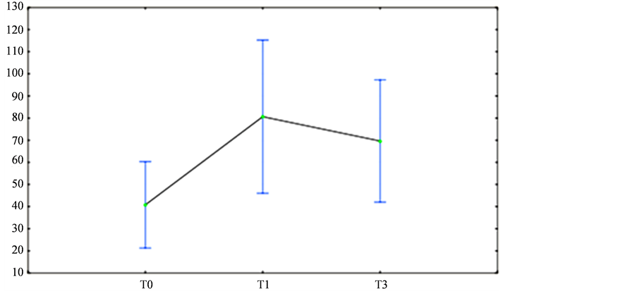 Figure 2. Evolution of NT-proBNP levels (ng/L) at the 3 times (T0, T1 and T3).