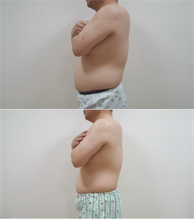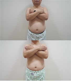 We measured the height and weight of thirteen subjects by digital portable standiometer (DS-102, JENIX, Korea), and assessed their waist circumferences at anterior superior iliac spine level with scales [14] . All subjects instructed to keep their ordinary behavioral attitude such as diet and physical activity. In addition, we assessed their body contours including frontal, both lateral and back views by photography with camera (Samsung SM-N920S, Korea) at initial and 8th week visit by the trained nurse.