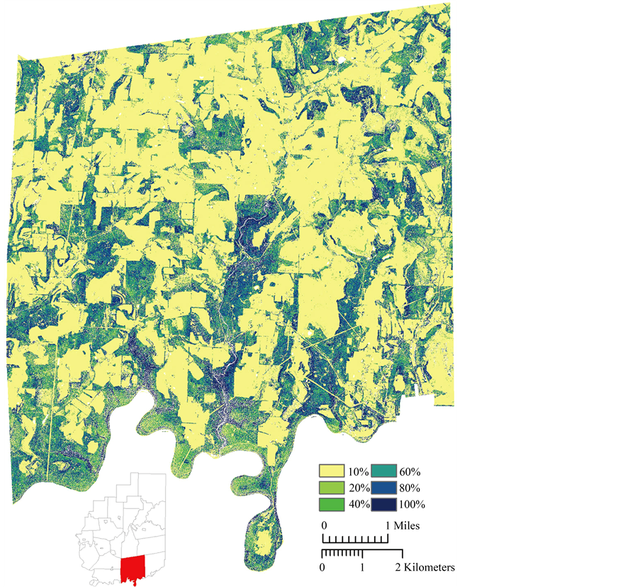 In conclusion, this project demonstrated the possibilities of using process automation through the adoption of geoprocessing modeling techniques in order to produce land cover and tree canopy density maps, as well as in the dissemination of the results through the deployment of a web-based application. The adopted techniques produced land cover and tree canopy density maps at 10 ft × 10 ft (≈3 × 3 meters) spatial resolution due to the use of LiDAR data and high resolution multispectral aerial photographs. Land cover maps at similar high resolution are rarely found in Pennsylvania especially in rural and suburban environments. Using the web application, any interested user or agency can download the available data, the data can then be used and manipulated accordingly. The flexibility of the adopted methods would allow others to produce high resolution land cover and tree canopy density maps easily and in a timely manner.