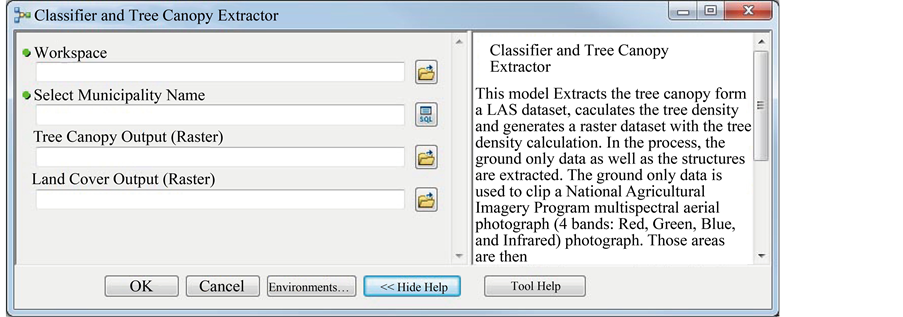 Figure 6. The main classifier and tree canopy extractor tool dialogue box.