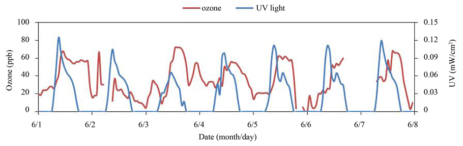 Figure 11. Ozone variation with UV light in Kunduchi in June 2013.